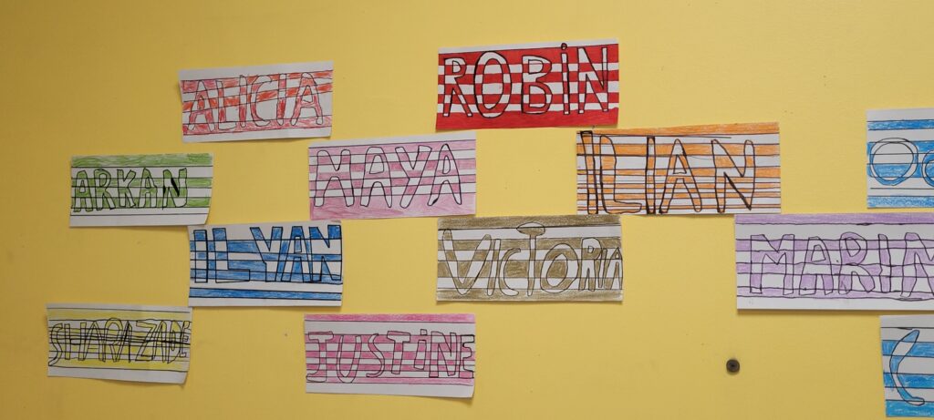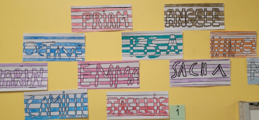 Pour la rentrée, en arts visuels, nous avons fait une activité « graphisme » pour décorer notre prénom.