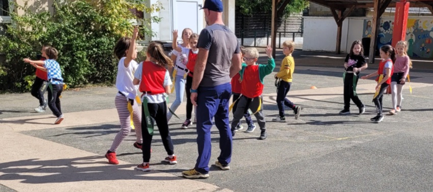Chaque année, nous avons la chance de pratiquer différents sports. Pour la première période, nous avons joué au flag. Chaque séance débute par la découverte d’un mot important pour le sport mais aussi pour le « bien vivre ensemble ». Nous avons, ainsi, pu mettre en pratique la bienveillance, le respect, le fairplay, la détermination…