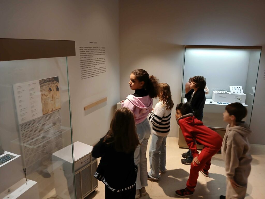 - Le 15 novembre 2024, les CM1 sont allés explorer la galerie égyptienne du musée de Tessé. Accompagnés par petits groupes par des parents d’élèves, ils ont chercher les réponses au questionnaire élaboré par leur enseignant. De quoi faire de belles découvertes! Merci à tous.